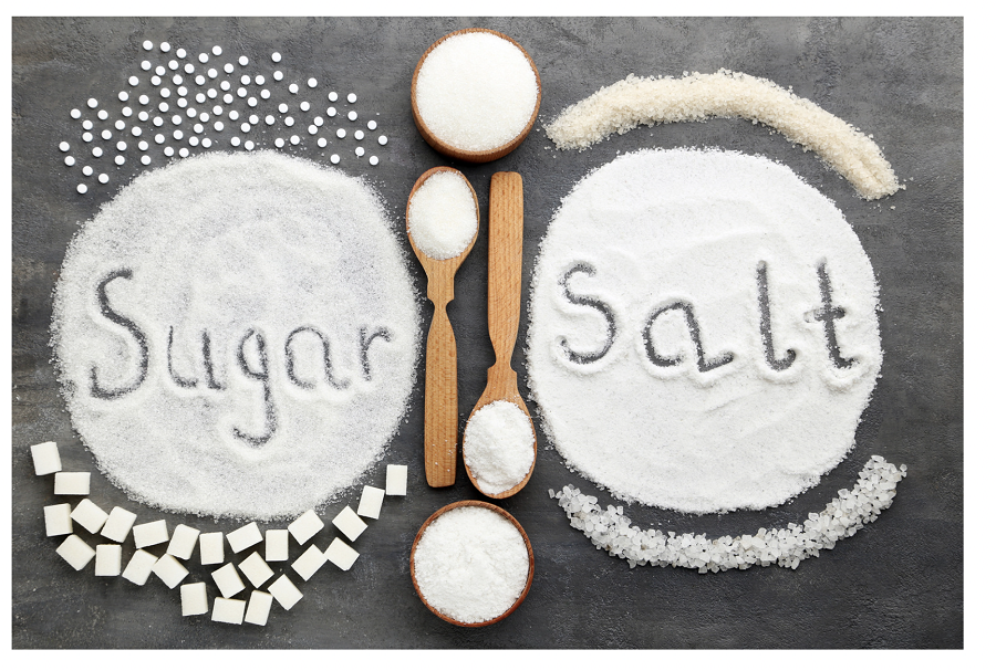 Hình 1: Hạn chế thực phẩm giàu muối, đường đơn để bảo vệ sức khoẻ